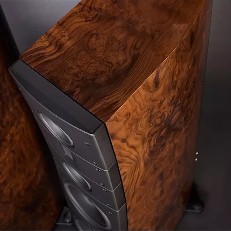 Каждая поверхность проходит восемь этапов прецизионной шлифовки, а затем шестнадцать слоев глянцевого лака, создавая зеркальную отделку, настолько безупречную, что ее можно было бы использовать как скандинавский каток. Каждая панель из шпона имеет уникальный серийный номер, что гарантирует, что ваши левая и правая колонки идеально сочетаются друг с другом и являются такими же эксклюзивными, как список гостей длинного дома Viking.