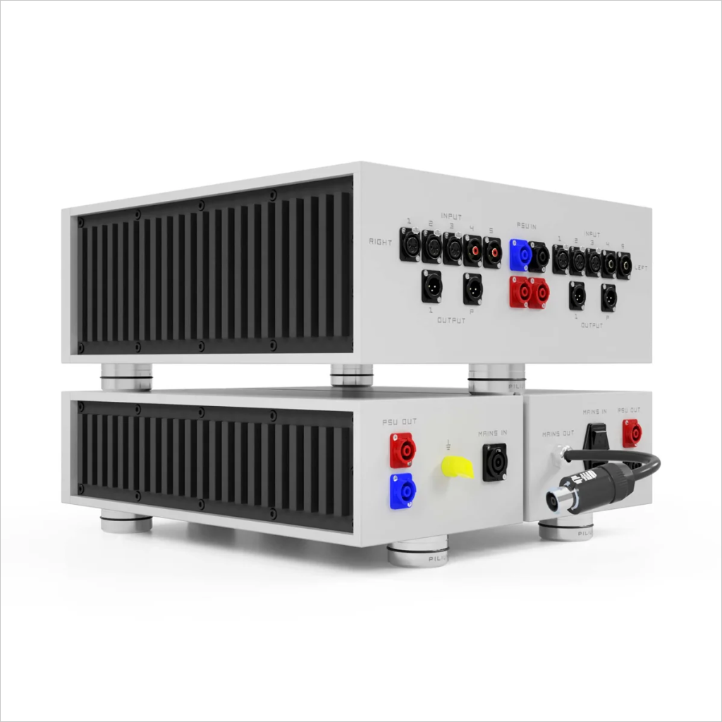 По сравнению с Divine Alexander, это на шаг выше с улучшениями в конструкции аналоговой схемы предусилителя, с НОВЫМИ «ультимативными» источниками питания, реализованными внешне в двух разных отдельных шасси (1/канал) и нашими новыми инкапсулированными трансформаторами со специальным сердечником и полной изоляции от шасси.
