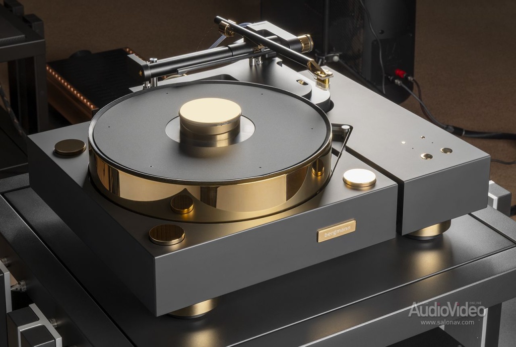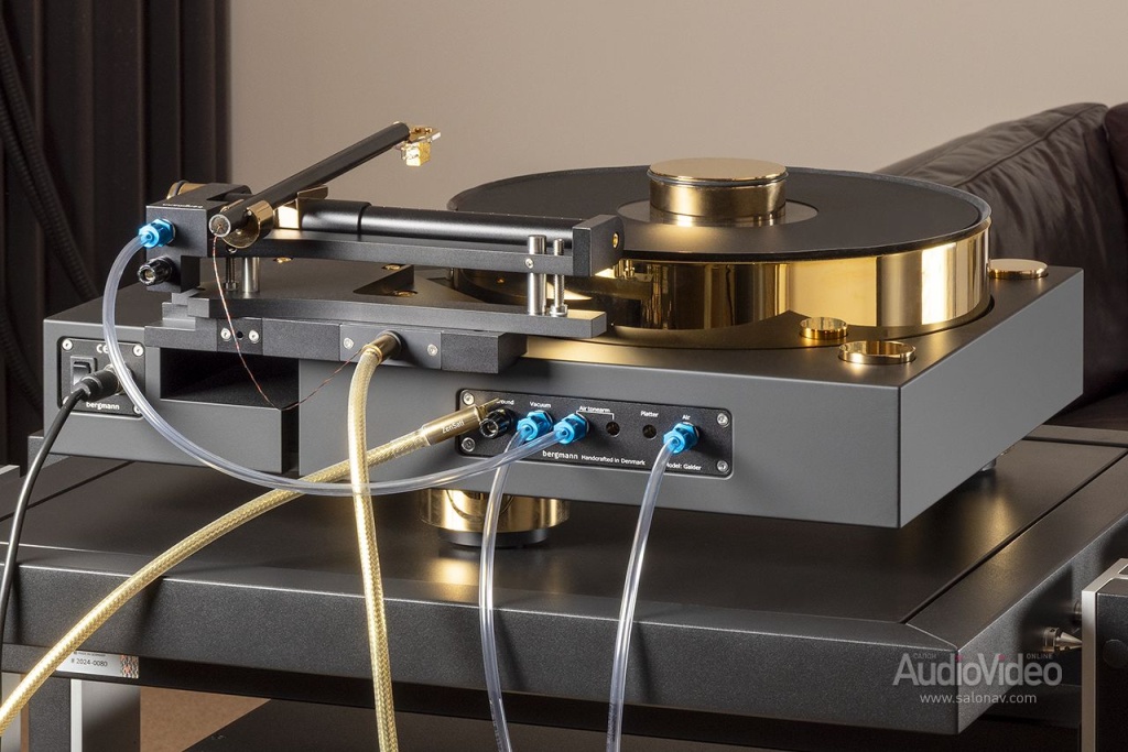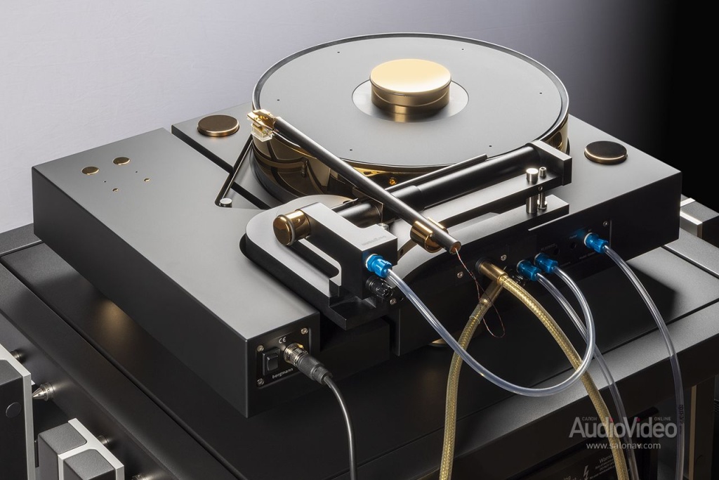 Для топовой модели Bergmann Galder Signature Gold Edition подушка особенно актуальна — диск из немагнитной нержавеющей стали весит 36 кг, и без подкачки воздуха скорый износ опорного узла был бы неминуем. Что стоит отметить особо, компрессор у этой модели совершенно бесшумный, поэтому его можно разместить в непосредственной близости от остальной аппаратуры. Масса диска необходима для инерции, которая сглаживает мгновенные колебания скорости, а также уводит основной резонанс конструкции в неслышимую инфранизкую область.