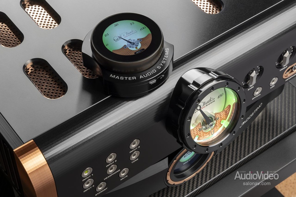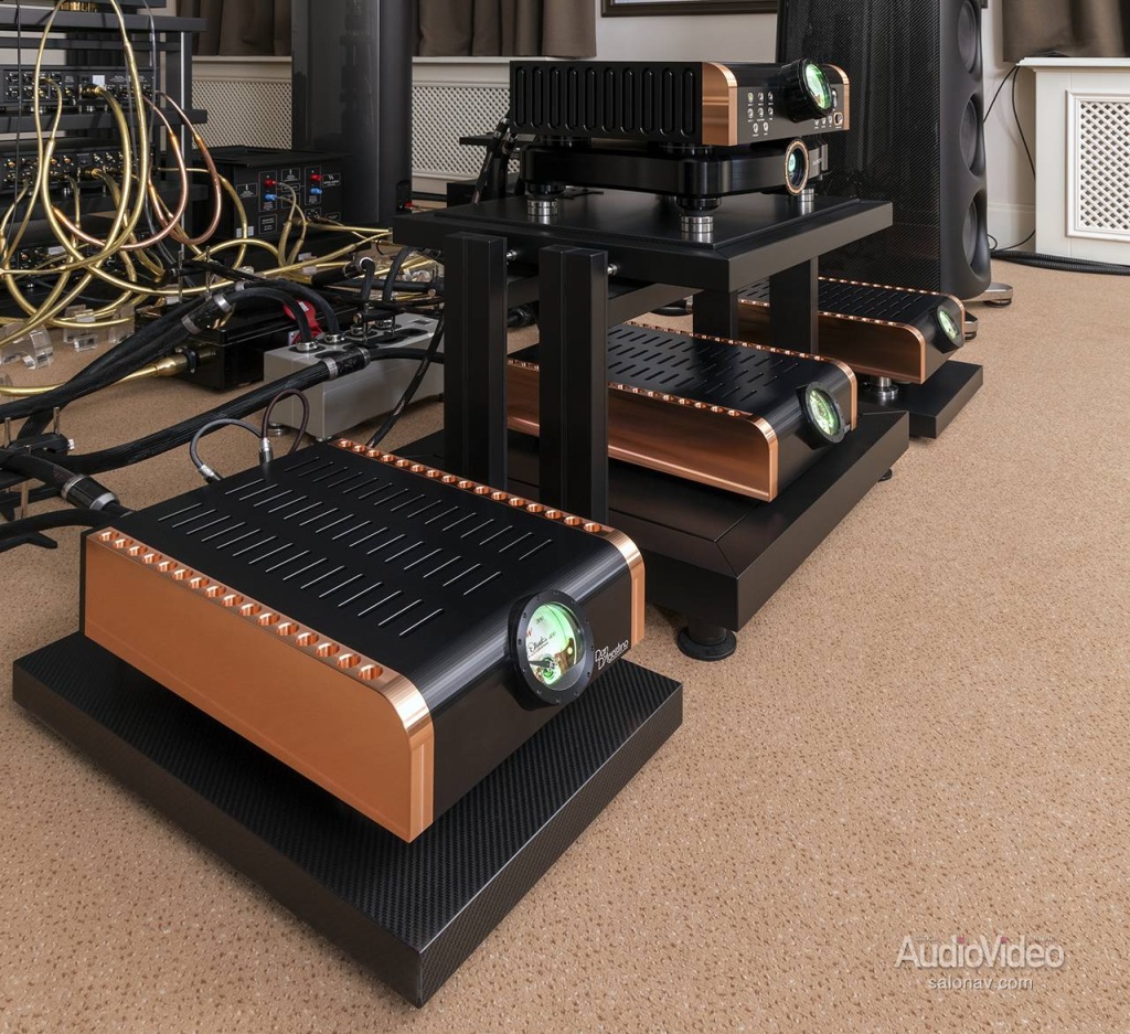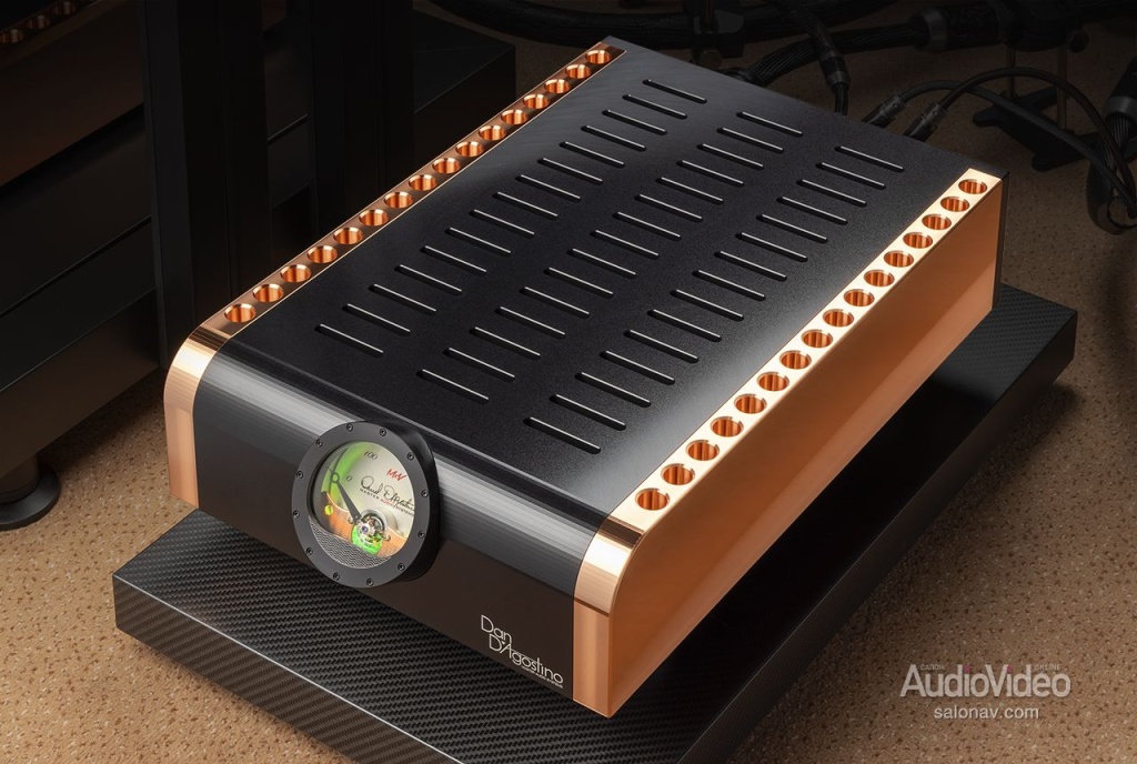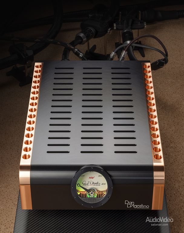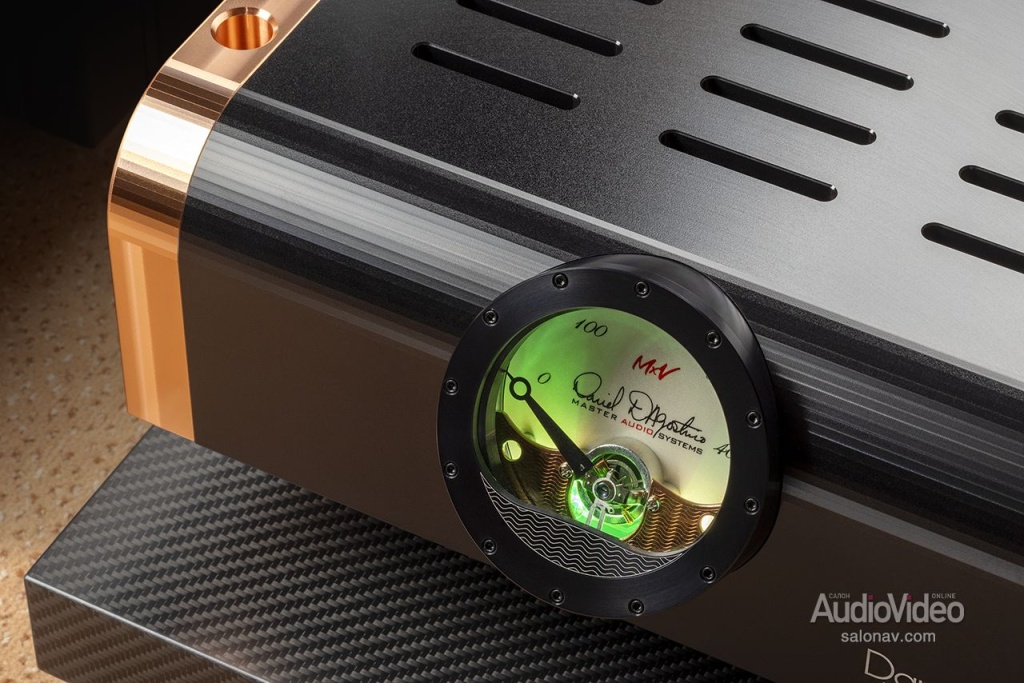 На создание линейки MxV компанию D’Agostino Master Audio Systems сподвиг успех комплекта Relentless, который мы не так давно испытали. Но это вещь штучная, доступная лишь узкому кругу любителей музыки, и в компании решили обновить популярную линейку Momentum, внедрив в неё изрядную долю инженерных решений из флагманского комплекта. Преемственность поколений была подчёркнута схожим дизайном с чернёным алюминием, медью и крупными циферблатами индикаторов в стиле «Ролекс» с зелёной подсветкой.