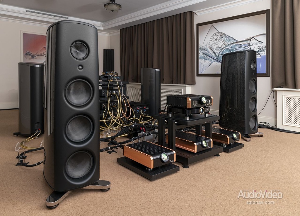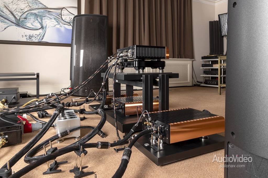 Моноблоки мы слушали в два этапа — сначала с цифровым источником, затем с аналоговым. Полный список компонентов, как всегда, в конце текста. Отдельно упомяну лишь предварительный усилитель D’Agostino С2, выполненный в том же дизайне, гигантские акустические системы Magico M6 и коммутацию топовыми кабелями Furutech Project V1. Прозрачность этих компонентов в первую очередь и позволила выявить малейшие нюансы звучания наших испытуемых.
