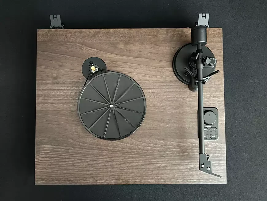Вертушка поддерживает три скорости вращения – 33,3, 45 и 78 оборотов в минуту, так что, если у вас найдутся в коллекции старые шеллаковые пластинки, MusicHall Fantasia Plus сможет их воспроизвести. Пластинка удерживается на шпинделе при помощи небольшого магнитного прижима.