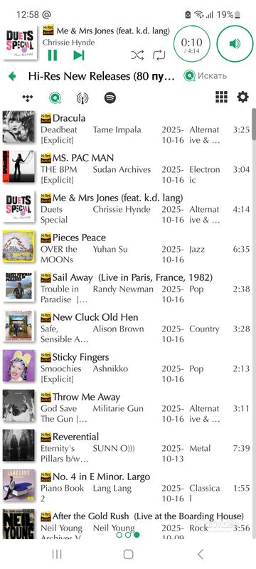 Но сначала пару слов о приложении. Как уже упоминал выше, структура настроек несколько непривычна, плотность информации буквально зашкаливает. Но логика понятна, и особых проблем не возникло. Структуризация контента, наоборот, традиционна, не вызовет вопросов даже у неподготовленного пользователя. Порадовала скорость, с которой стример переходил от трека к треку, и оперативность поиска альбомов по названию.