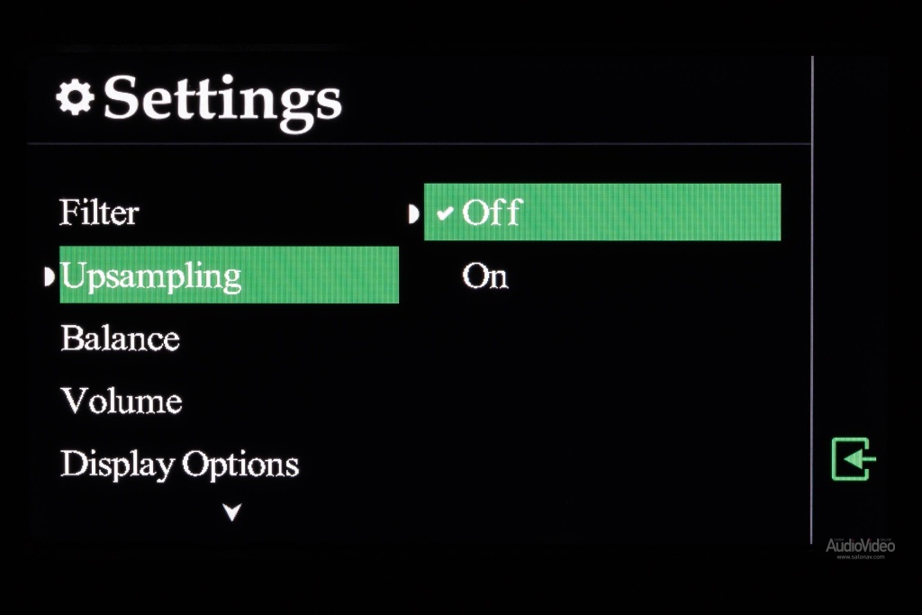 Через меню можно выбрать любой из пяти вариантов цифрового фильтра с разной крутизной спада и фазовой характеристикой, а также включить апсемплинг входного сигнала до 352,8 или 384 кГц. Отдельный раздел меню посвящён настройкам дисплея, в котором предлагаются графические режимы Home, Artwork A, Artwork B, VU Digital (полосочки), VU Analogue (стрелочки!), логотип Quad и логотип Platina. При желании дисплей можно отключить совсем.