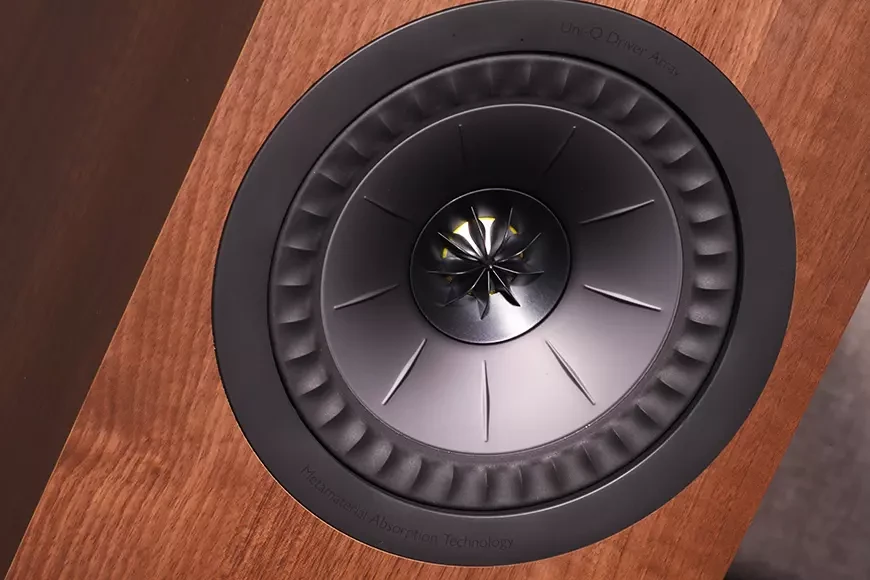 Точнее сказать – излучатель, поскольку 12-е поколение фирменного драйвера Uni-Q представляет собой единое целое, хотя и состоит из двух различных динамиков с раздельной магнитной системой. За высокие частоты отвечает дюймовый твитер с алюминиевым куполом, на средних и низких частотах в работу вступает алюминиевый диффузор с ребрами жёсткости диаметром 165 мм, закрепленный на широком профилированном подвесе. В центре диффузора расположен оригинальный волновод, обеспечивающий не только правильную диаграмму направленности, но и помогающий фазовому согласованию работы двух излучателей.