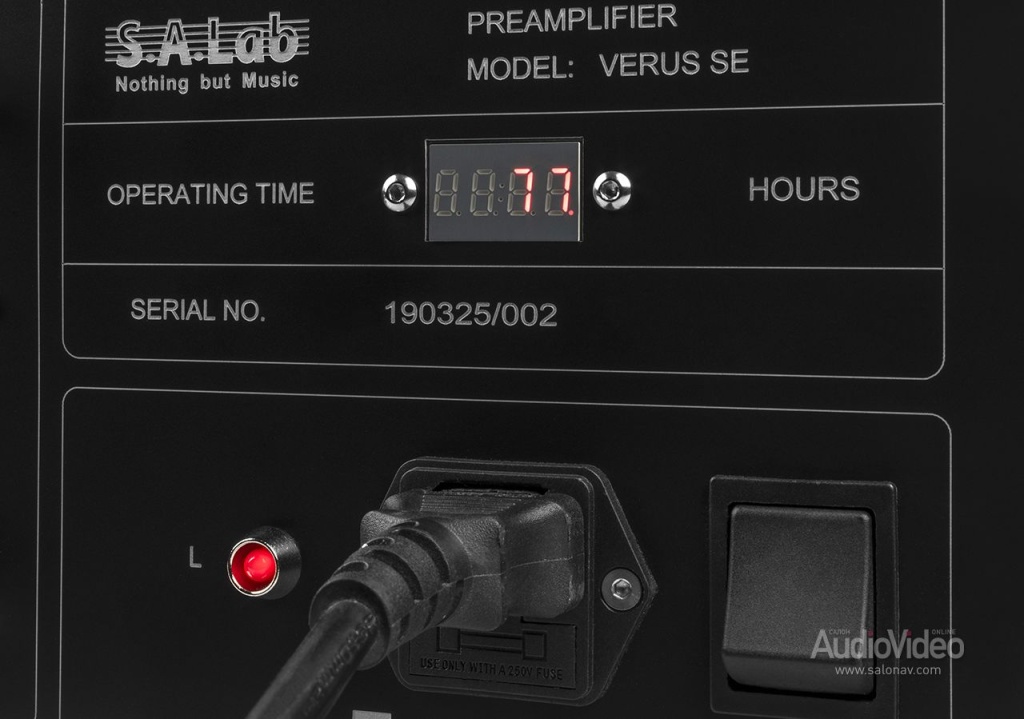 Дизайн Verus SE традиционный для S.A. Lab — толстая лицевая панель с зеркальной отделкой, дисплей, показывающий уровень громкости и крупная ручка котроллера. Он и громкость регулирует, и позволяет выбрать нужный вход.