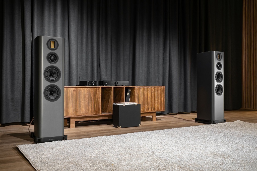 Мягко и легко Wharfedale EVO 5.4 Lunar Gray возникают из полумрака, легко скользит шелковый палантин, обнажая невиданную доселе глубину матовой серости. Выглядят они спокойно, достойно, а еще технологично.