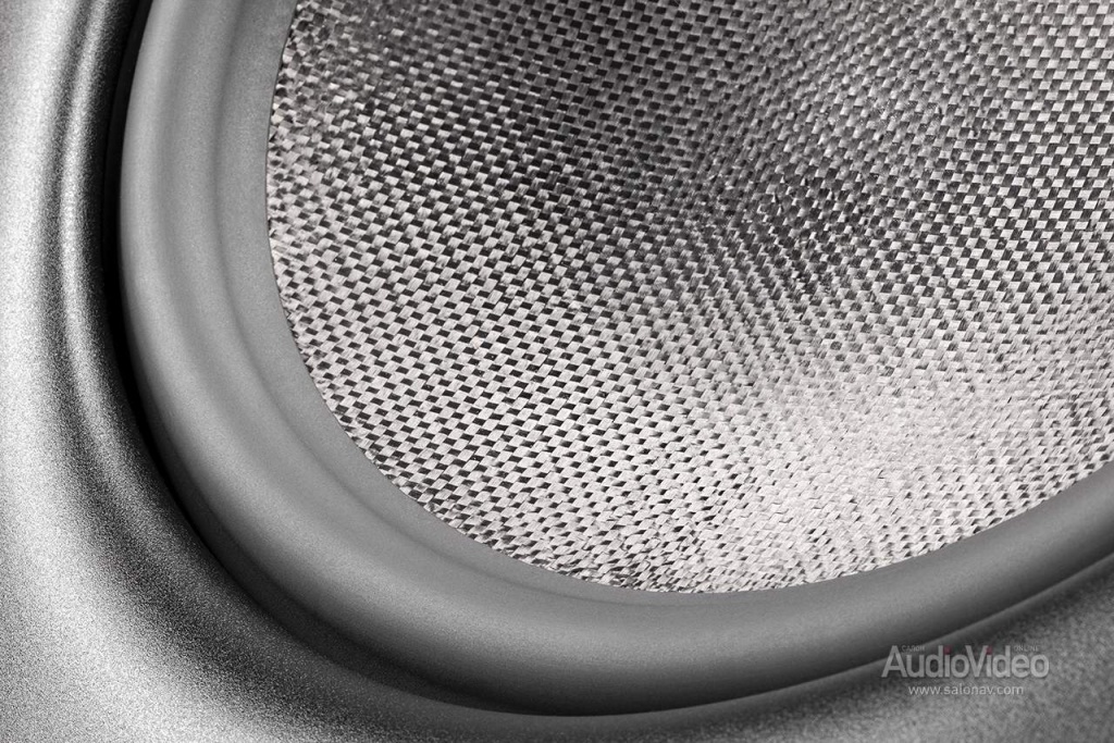 Напомню, что они состоят из алюминиевой сердцевины в виде пчелиных сот, которая с обеих сторон покрыта слоями углеродного волокна с добавлением графена. Поскольку графен имеет прочность закалённой стали и при этом почти ничего не весит, диффузоры Magico имеют рекордно высокое отношение жёсткости к массе, а это благоприятно сказывается на скорости воспроизведения баса.