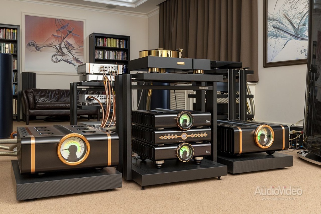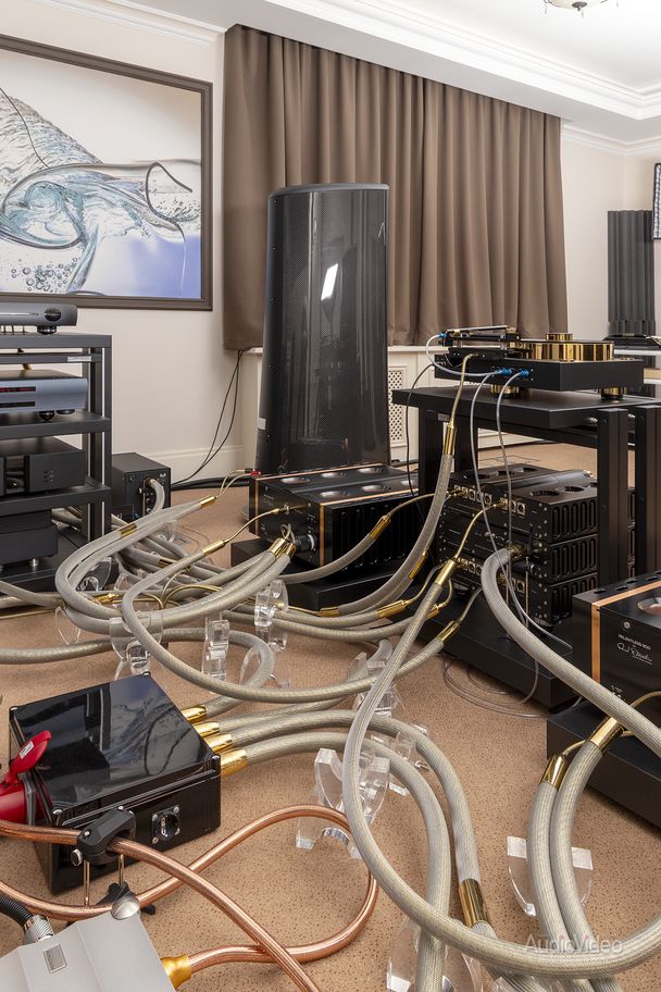 Как видно на фото, акустика M7 испытывалась нами совместно с уникальным усилительным комплектом Dan d‘Agostino Relentless, состоящего из двухблочного предусилителя и пары 800-ватных моноблоков. Источников по традиции было несколько: сначала цифровой (сервер/стример Antipodes Oladra+ ЦАП Playback Designs MPD-8Ai), а затем аналоговый (проигрыватель Bergmann Galder Signature Gold Edition с фонокорректором Vitus Audio SP-103 MKII). Кабельная обвязка, включая и силовую (и это принципиально), -топовыми ZenSati #Х. Так что цена комплекта просто астрономическая.