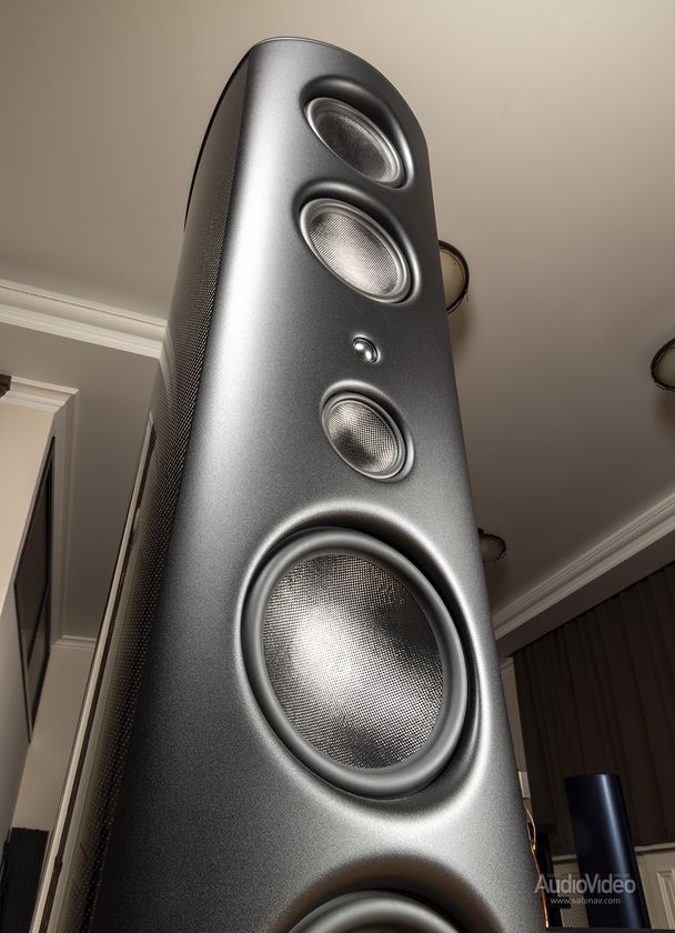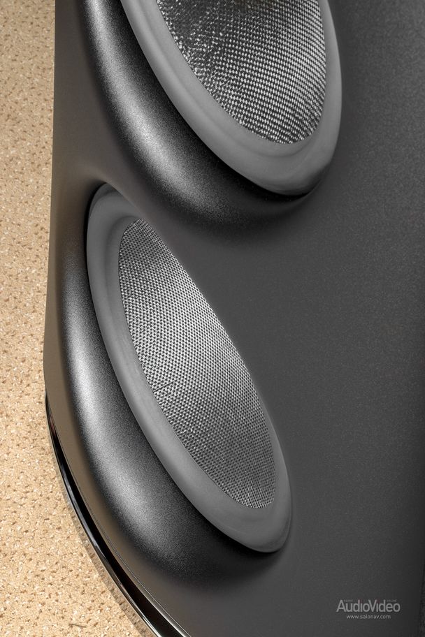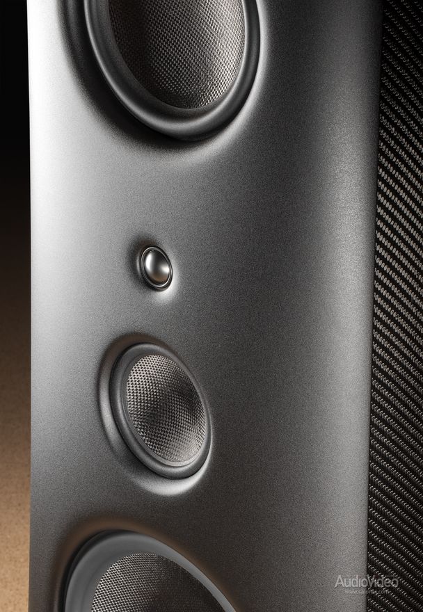 Передняя панель, на которой установлены динамики, выточена из 180-килограммовой заготовки алюминия 6061-T6 и заглушена композитными материалами, применяемыми в аэрокосмической отрасли. Её форма экспериментально дорабатывалась до тех пор, пока дифракционные эффекты от всех шести динамиков практически были сведены к нулю. Отсюда и чрезвычайно сложный профиль панели с тщательно рассчитанными огибающими и углублениями для каждого диффузора.