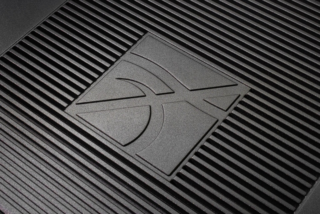 Поперечные полосы верхней панели играют в похожую игру: под углом это кажется декоративным элементом, чтобы подчеркнуть большой, выкованный из сердец меломанов логотип бренда. Но если взглянуть сверху, прямо — обнаружатся тонкие прорези вентиляции. Таким образом, несмотря на плотно распределенную внешнюю броню, корпус получил продуманные инженерно-дизайнерские решения, благодаря которым нашему рыцарю внутри не только безопасно, но и не жарко. И заметьте — на виду нет ни одного винта, ни единой заклепки.
