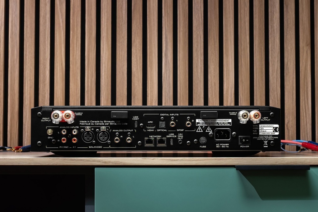 Задняя панель выглядит максимально современно, преуспевая в своей развитости над многими конкурентами. Две пары клемм для колонок разнесены по верхним углам, между ними — разного рода доступ к технологическому буйству и ответы на любые прихоти владельца. Аналоговые входы: XLR и пара RCA, один из которых навсегда предан ММ/МС фонокорректору. Аналоговый выход — это выход с предусилителя на разъемах RCA. Все остальное сплошь цифровое: пара коаксиалов, один оптический вход, Type-C и HDMI ARC — без этого сейчас не стать универсалом.