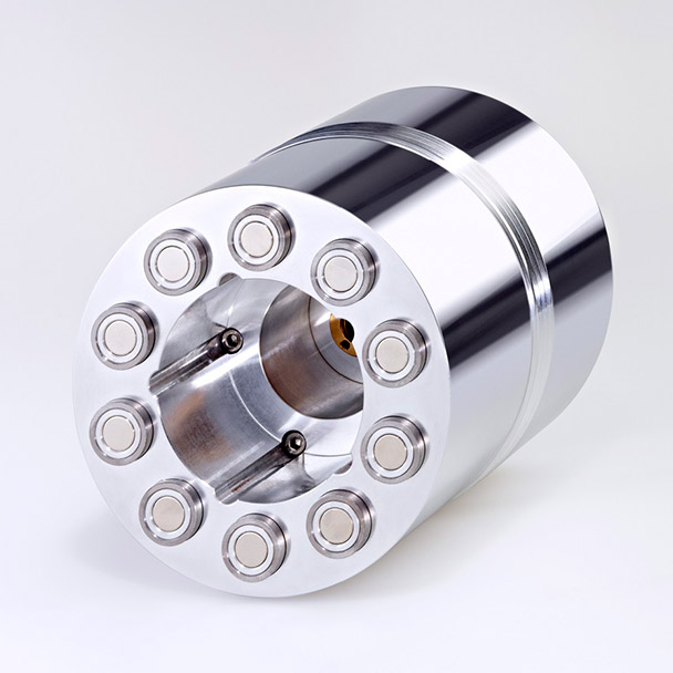 Система получается сложная, с прецизионной механикой, поскольку биений и люфтов в ней быть не должно. Точность изготовления и впрямь потрясающая: в подшипниках ведомого магнитного и опорного дисков зазоры между осями и стенками шахты составляют от 5 до 30 микрон. Эти зазоры заполняются маслом, которое при вращении осей поднимается вверх по шахте и смазывает все поверхности.