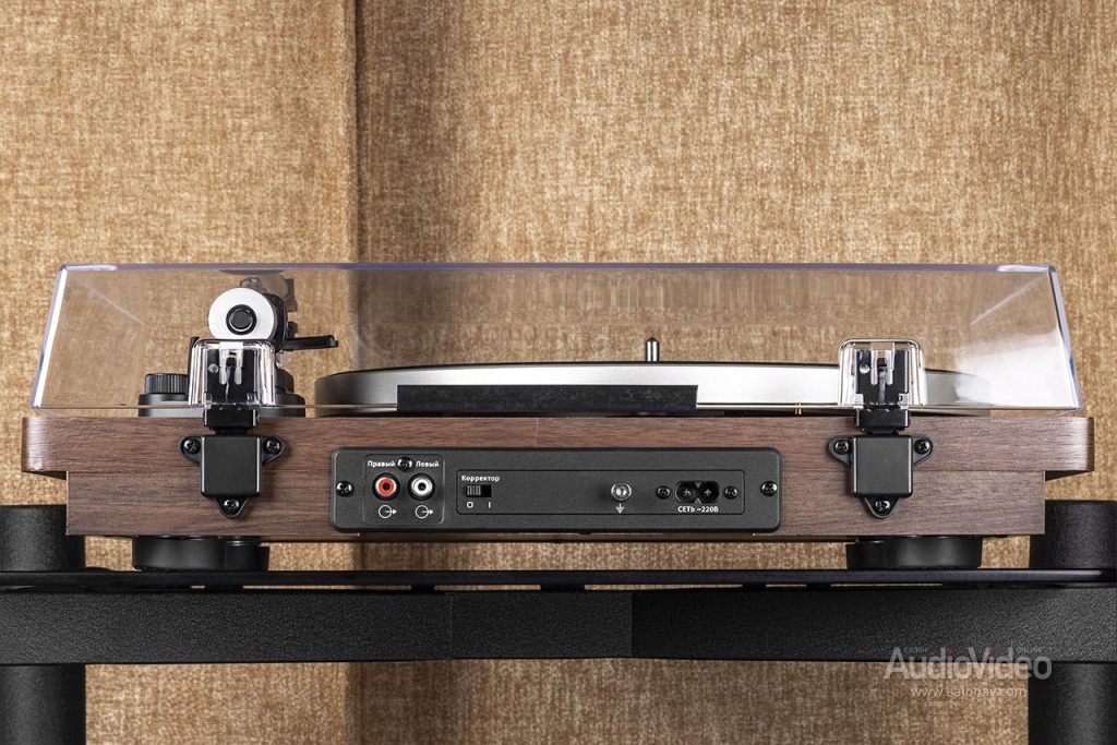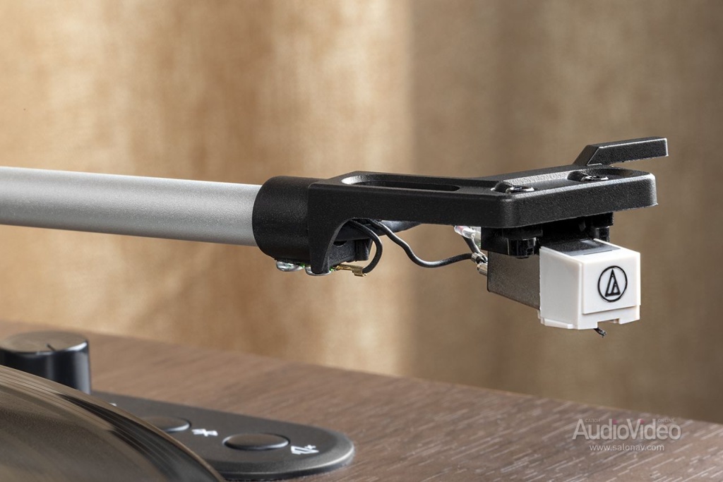 На проигрыватель штатно устанавливается недорогая ММ-головка Audio-Technica AT-3600L. Причём это не китайская подделка, а официальный продукт компании, выделяемый производителю проигрывателей по квоте. Параметры вполне хай-файные: рабочий диапазон от 20 Гц до 20 кГц, разделение каналов на 1 кГц — 20 дБ. Рекомендованная прижимная сила от 2,0 до 2,5 г, профиль иглы — конус.