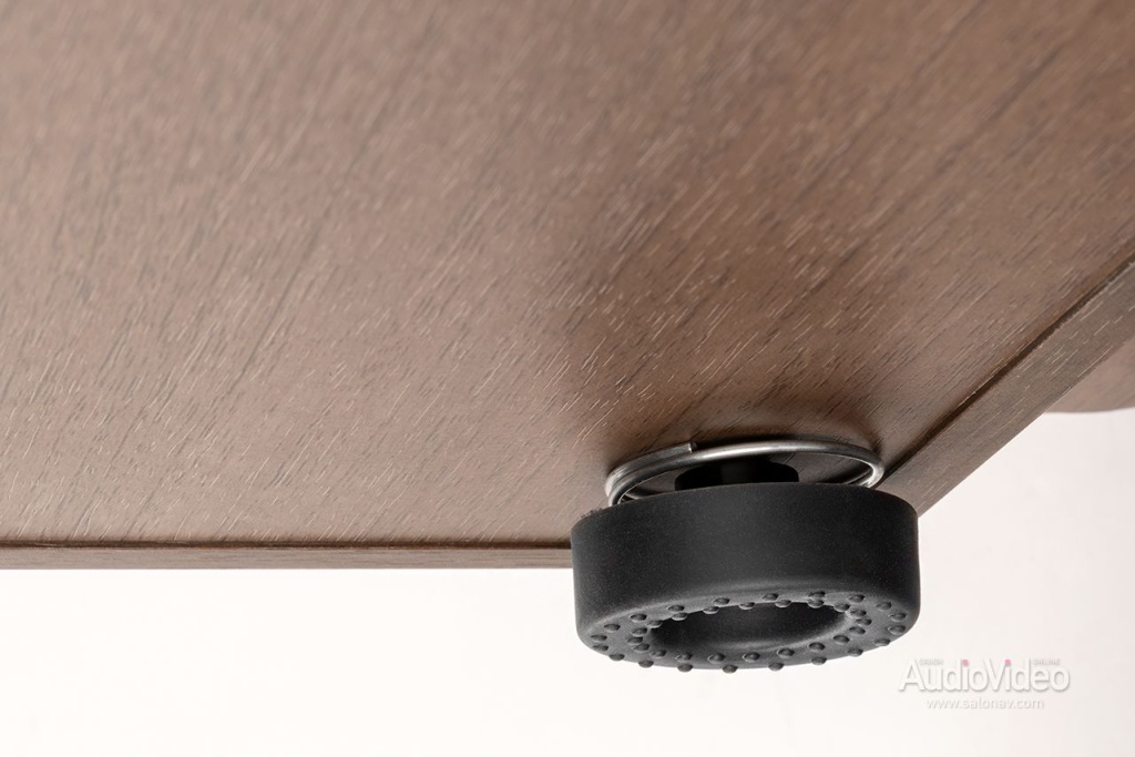 Проигрыватель устанавливается на четыре подпружиненных опоры, благодаря которым вибрации полки и удары по ней на корпус практически не передаются.