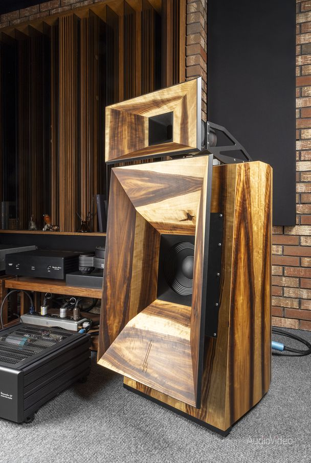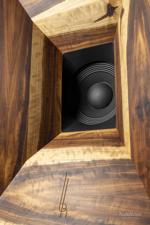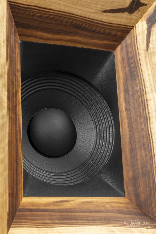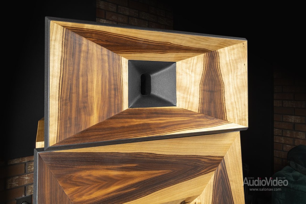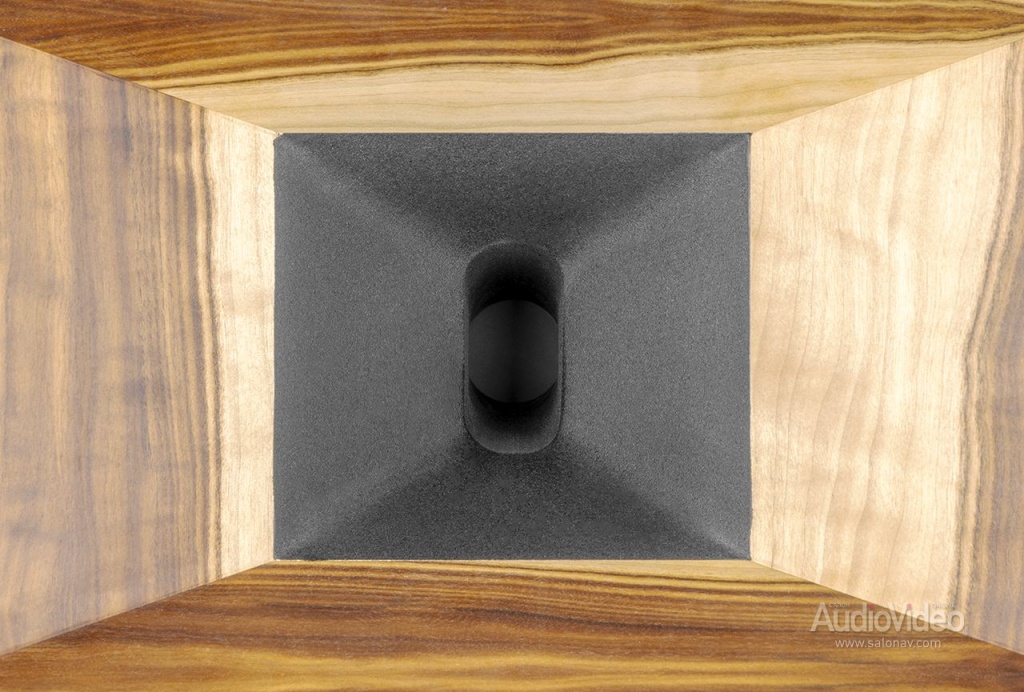 Несмотря на солидные габариты и 100-килограммовую массу, системы эти двухполосные. Озвучивание диапазона 35 — 20 000 Гц с неравномерностью ±2 дБ при этом стало возможным благодаря применению особых динамиков в рупорном акустическом оформлении. Нижняя полоса от 35 до 850 Гц перекрывается 15-дюймовым драйвером с лёгким бумажным диффузором и мощным «движком» AlNiCo, создающим сильное и однородное магнитное поле, в котором движется звуковая катушка. Нелинейные искажения этого динамика крайне незначительны даже на большой громкости. В самой нижней октаве спад характеристики устраняется фазоинвертором (порт выведен вниз), а отдача верхнего баса оптимизируется рупором и т.н. предрупорной камерой, которая не только улучшает согласование оформления с динамиком, но и работает как акустический фильтр, ограничивающий диапазон басовика сверху. Что, в свою очередь, позволяет значительно упростить схему кроссовера. Огромный квадратный рупор из HDF толщиной 19 мм с демпфирующим покрытием отделывается в тон корпуса натуральным шпоном.