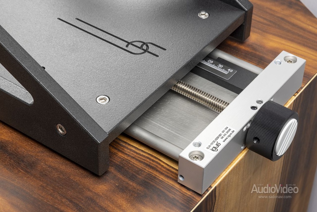 Твитер установлен на каретке, которая может перемещаться по направляющим на верхней плоскости корпуса. Подкручивая регулировочный винт и ориентируясь на шкалу с миллиметровой градуировкой, можно добиться точного согласования обеих полос в конкретных акустических условиях.