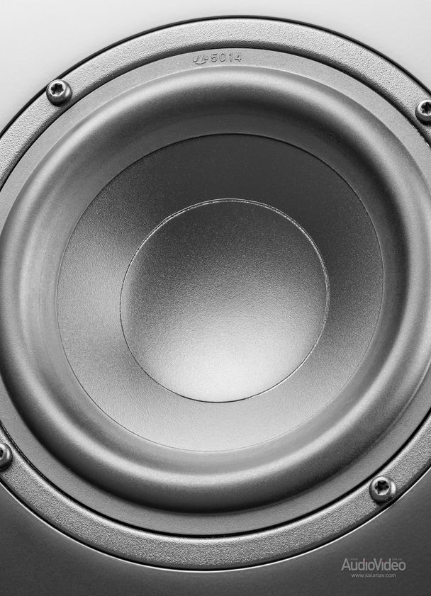 Мониторы эти двухполосные. НЧ/СЧ драйвер с полипропиленовым диффузором 5,25 дюймов работает в фазоинверторном оформлении с портом на задней стенке. Обратите внимание на форму диффузора — такая вогнутая полусфера обладает гораздо более высокой жёсткостью, чем обычный «конус» с пылезащитным колпачком.