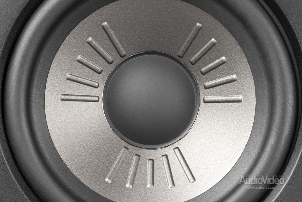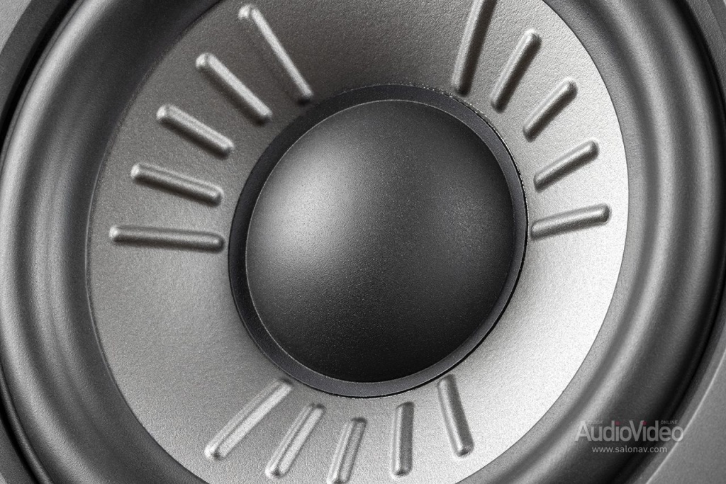 Мидбасовый динамик тот же, со 15-сантиметровым диффузором из материала Klarity, который представляет собой композит из полипропилена и слюды. Его характеристики не меняются от влажности, а природный наполнитель придает полимерной основе большую жесткость и позволяет «отпечатать» диффузор тоньше и легче. Характерные ребра на поверхности добавлены, кстати, не ради красоты. Они позволяют использовать почти невесомый диффузор в сочетании с длинноходным податливым подвесом без риска искривлений излучателя при работе на разных частотах и амплитудах. Также головка отличается облегченным термостойким каркасом звуковой катушки и компенсационными алюминиевыми кольцами в магнитной системе для подавления вихревых токов. Изменились лишь допуски при производстве этих головок — теперь они отличаются меньшим разбросом параметров.