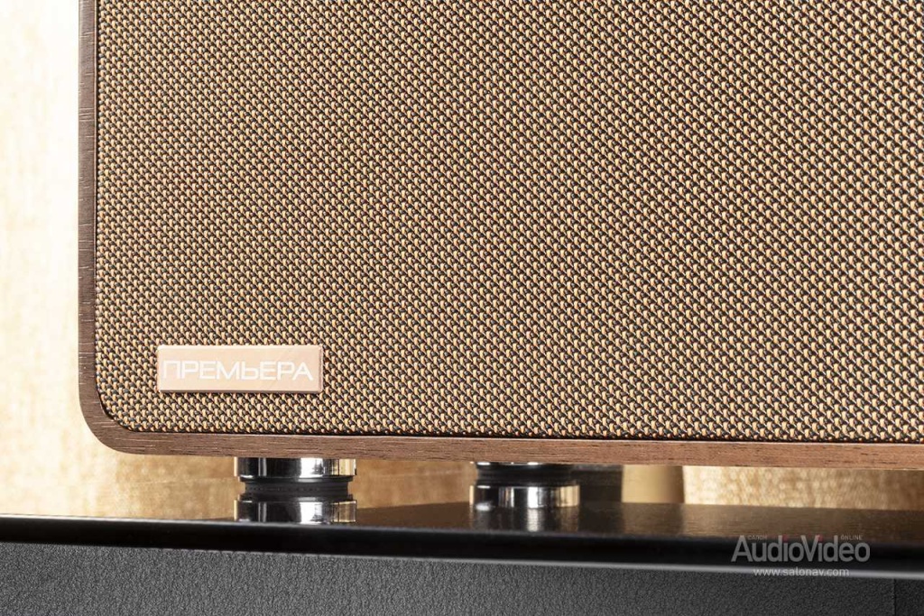 Под несъёмным грилем установлены четыре динамика, по паре для каждого канала — 100 мм басовик с диффузором из крафт-бумаги и твитер с дюймовым тканевым куполом.