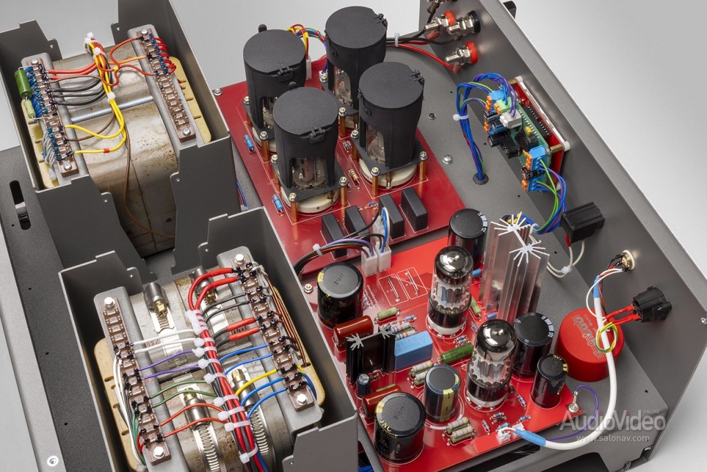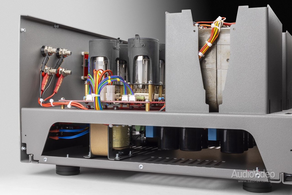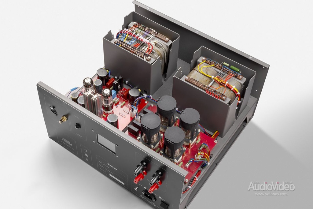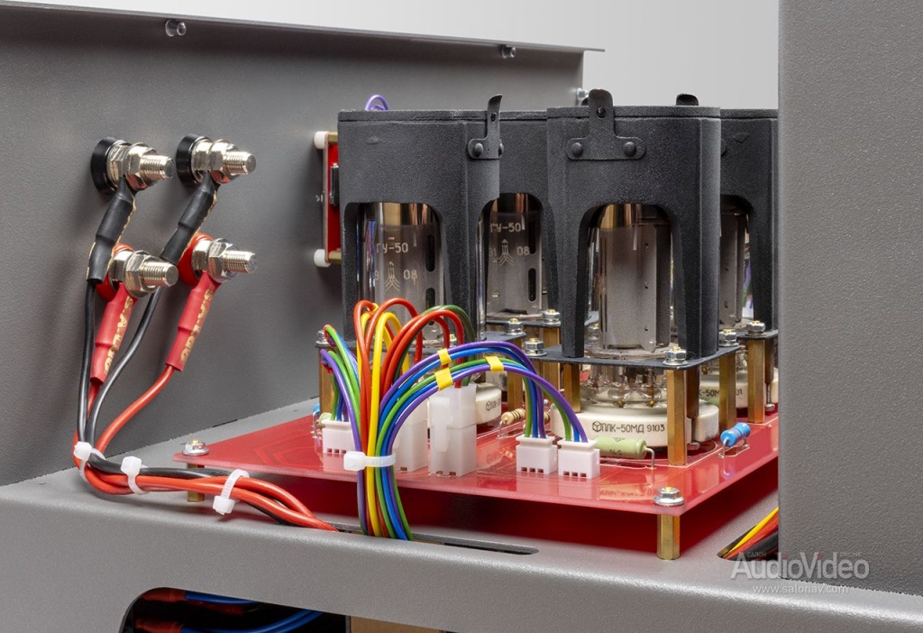 Перед нами — очередная разработка российской компании, адресованная любителям лампового звука. В каждом моноблоке четыре генераторных пентода ГУ-50 способны выдать в нагрузку до 196 Вт, так что проблемы с выбором подходящей акустики для них не существует. Режимы ламп контролируются процессором, благодаря чему на протяжении всего срока эксплуатации уровень искажений поддерживается на минимуме.