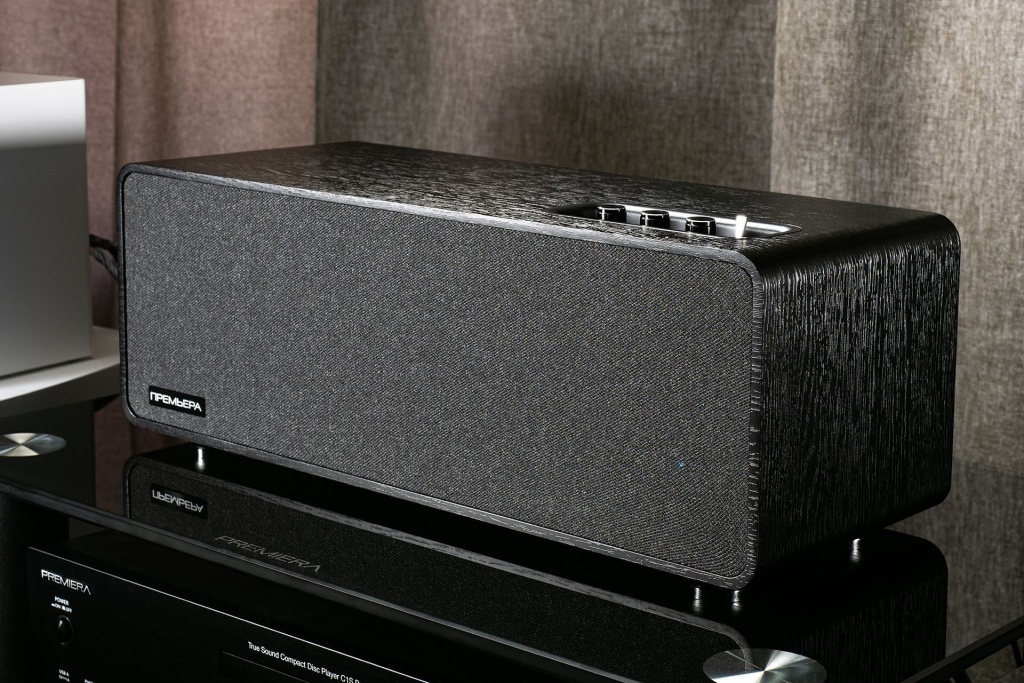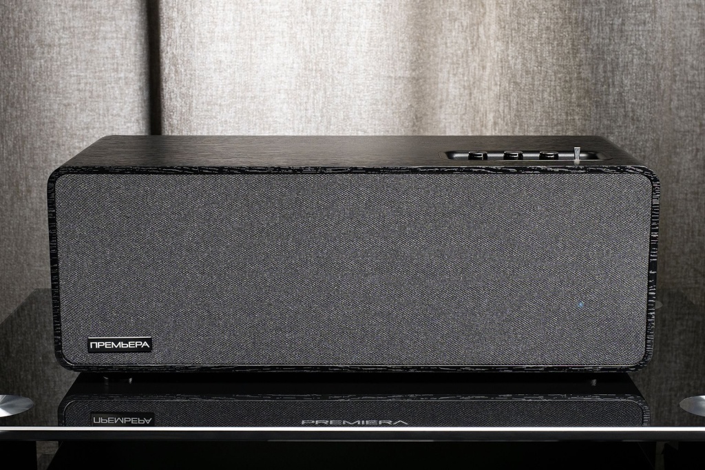Хочется отметить плавную регулировку громкости — а заодно и тот факт, что колонка выдерживает выкручивание ручки достаточно сильно и продолжает активно и реально глубоко работать с басом, не особо заботясь о снижении его уровня относительно общей громкости, как это бывает в колонках с пассивными излучателями. Здесь без обмана: делаешь громко — громко будет все. Но в этом моменте Premiera снова дает отсылку к своим хайфайным корням: ее не хочется делать громче, потому что и так все слышно