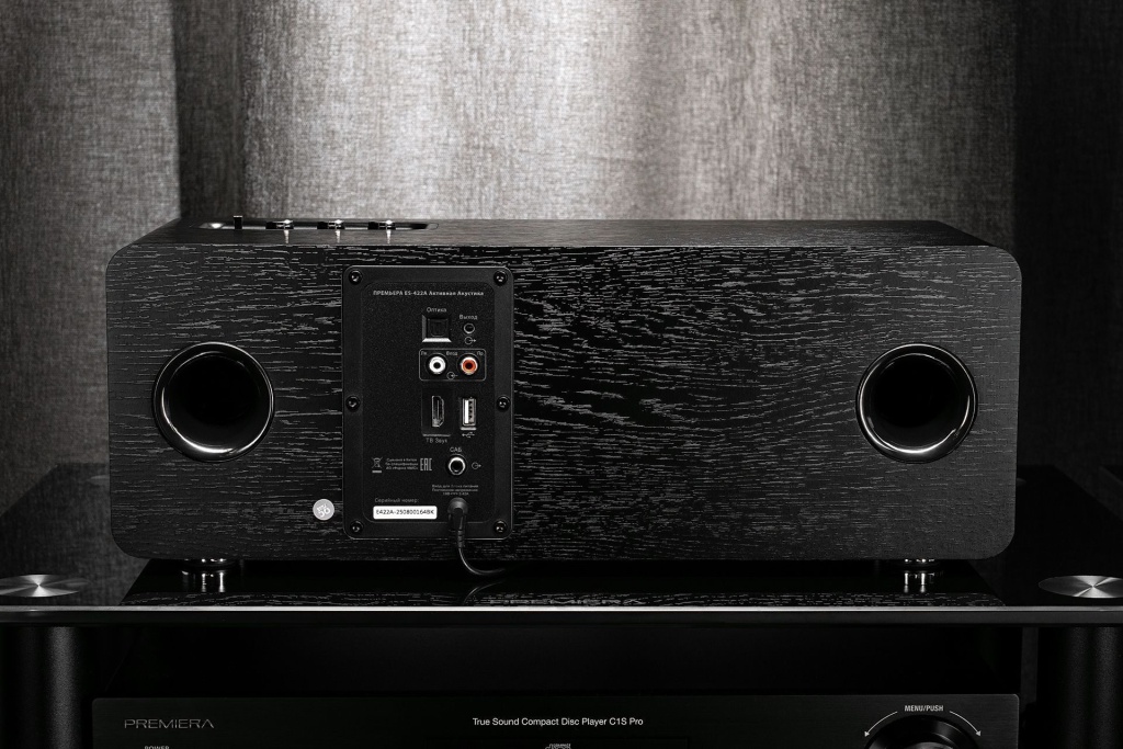 Технически Premiera ES-422A — это активная колонка в том виде, который предполагает беззаботное прослушивание, простое управление и удобное подключение. Но ряд инженерных решений все же дает возможность посмотреть на нее с более привычной для нас стороны, где точечно проделана работа и над выбором излучателей, и над компоновкой пусть и небольшого, но кабинета.