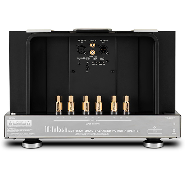 Запатентованные акустические терминалы McIntosh Solid Cinch, которые легко, но надежно присоединяют кабели громкоговорителей и защищают от короткого замыкания. Терминалы покрыты золотом для предотвращения коррозии и обеспечивают передачу качественного сигнала через акустические кабели. В McIntosh MC1.25KW использованы сквозные выходы, для построения двухкабельного или трёхкабельного подключения ваших акустических систем. Они также могут использоваться для отправки аудиосигнала во вторичную систему, если ваш предусилитель не имеет достаточного количества выходов или для подключения активного сабвуфера...