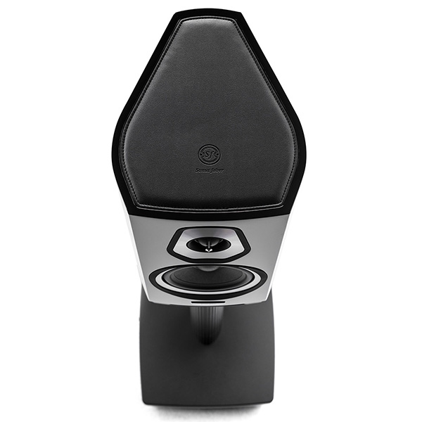Корпуса колонок Sonetto имеют традиционную для SF форму лютни, которая не только элегантно выглядит, но и помогает бороться с внутренними резонансами, улучшая звучание. Причем передняя панель плавно переходит в боковые стенки, улучшая восприятие цельного образа колонок. Еще один традиционный штрих к образу премиальных АС — верхняя панель, обтянутая кожей ручной выделки с логотипом компании. Есть вещи, которые руки так и тянутся потрогать, именно таким элементом колонок и является передняя панель с шикарной кожей, которую хочется почувствовать подушечками пальцев. Из таких мелких элементов и создается аура обладания премиальным продуктом.