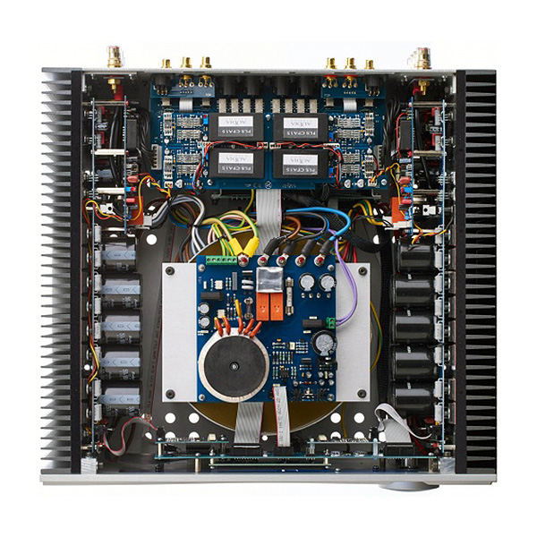 Такой усилитель хорошо подходит для работы с акустическими системами, обладающими сложной характеристикой нагрузки и просто низким входным сопротивлением (до 2 Ом). Схема предварительного каскада также полностью симметричная, с конструкцией "двойное моно", регулятор уровня выполнен по принципам High End; имеется два регулируемых выхода XLR и RCA, выход на запись (REC) RCA, три входа RCA и два входа XLR. Микропроцессорное управление позволяет отключать неактивные входы и включать их обратно, регулировать чувствительность и коэффициент усиления (±6 дБ), переименовывать входы.