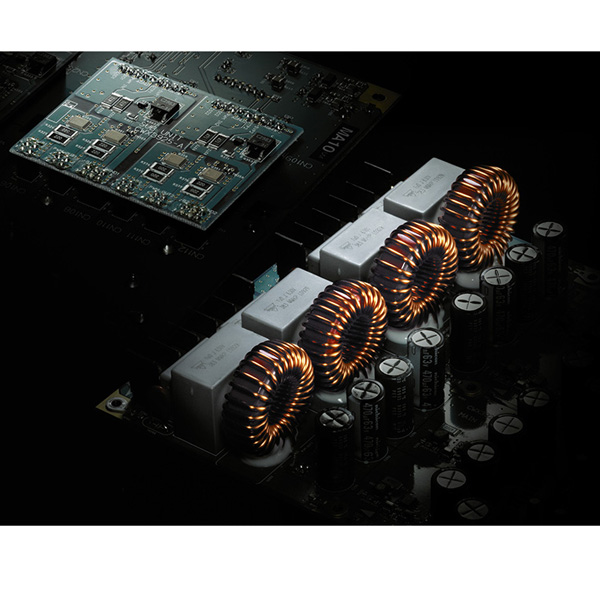 Аналоговый блок питания, оснащенный тороидальным трансформатором и высокоемкими электролитическими конденсаторами, обеспечивает незабываемое ощущение скорости и энергии. В сочетании со схемой класса D это дает усиление с высоким откликом и низким уровнем помех. Для достижения оптимального звучания инженеры TAD провели работы по созданию безсвинцовых мосфетов с низким сопротивлением. Высокая энергоэффективность класса D обеспечивает низкое тепловыделение, поэтому при работе на высоких мощностях перегрев оборудования исключен.