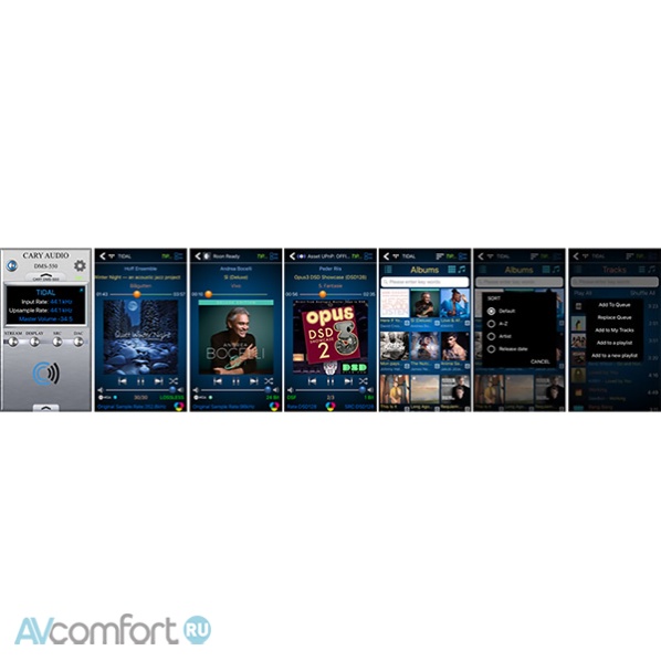 Проигрыватель Cary Audio DMS-600 имеет сертификат Roon Ready, т.е. представляет собой конечный источник с готовыми настройками под стрим Roon. Поддерживается работа с полностью оптимизированным для связки с ЦАПами AKM контейнером MQA последнего поколения с возможностью передачи Hi-Res-аудиофайлов в разрешении до 24 бит/384 кГц. При этом также доступен 16-кратный MQA-рендеринг. Модель Cary Audio DMS-600 работает с Wi-Fi-протоколом нового поколения MU-MIMO, который обеспечивает более эффективную работу на частоте в 5 ГГц и значительно улучшает пропускную способность Wi-Fi-сети.