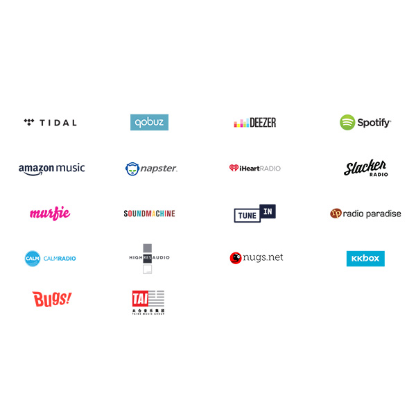 | Потоковые протоколы | Spotify, Amazon Music, TIDAL, Deezer , Qobuz, HDTracks, HighResAudio, Murfie , JUKE, Napster, Slacker Radio, KKBox, Bugs |