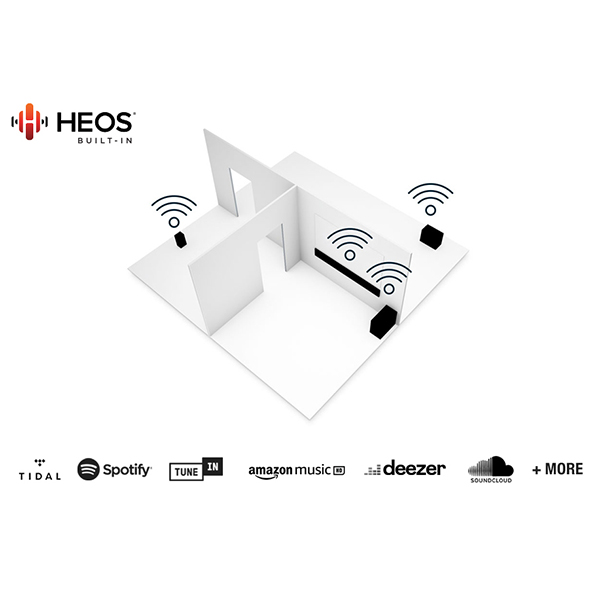 Беспроводное домашнее аудио: группируйте несколько устройств HEOS- (AV-ресивер, саундбар, и др) для синхронного воспроизведения музыки в нескольких комнатах по беспроводной сети.