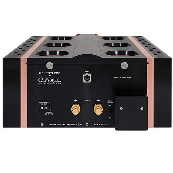 За счет большого количества металла Relentless Monoblock весит чуть больше 220 кг. Усилитель установлен на 307 округлых опорах — такая форма ножек не даст массивному устройству повредить пол. В комплекте идет специальный гаечный ключ из углеволокна, с помощью которого для максимального контакта следует закручивать акустические клеммы…