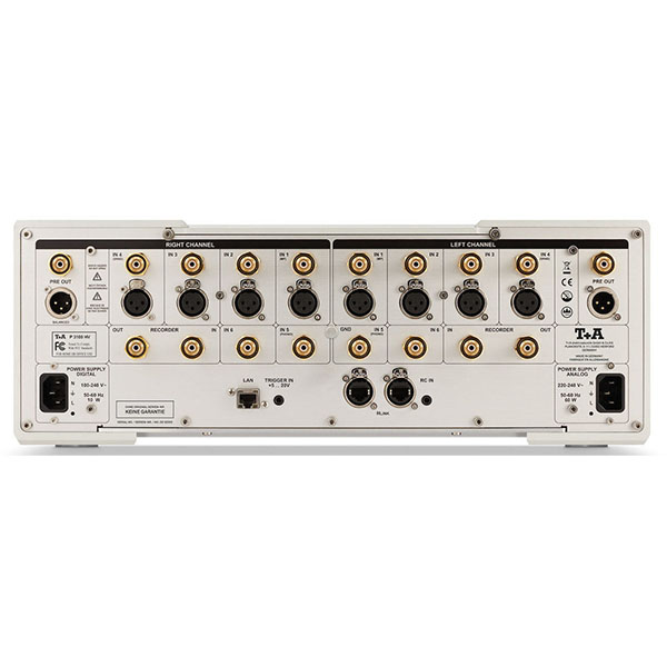 На задней панели расположена симметричная структура двойного моно P 3100 HV. Каналы последовательно разделены. Платы предусилителя расположены под крышкой корпуса и имеют симметричную конструкцию. Это исключает электромагнитные помехи. Платы размещены в отдельном отсеке, выполненном из толстостенных (10–15 мм) алюминиевых пластин, и полностью изолированы и экранированы от источника питания, а также от источника питания в нижней части корпуса.