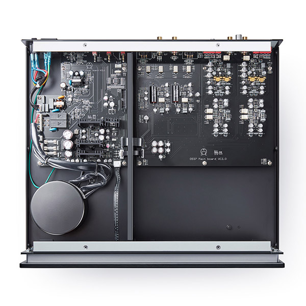 Для защиты чувствительных сигнальных цепей от возможных помех внутренняя часть устройства разделена экранами на отдельные секции. Трансформатор расположен в углу одной секции, а сигнальные цепи – в противоположном углу другой секции. Трансформатор оснащен раздельными обмотками для левого и правого каналов ("конструкция двое моно"), сигналы которых потом индивидуально регулируются, обеспечивая различные напряжения, требуемые Primare R35. Во всех схемах используются танталовые низкоимпедансные конденсаторы.