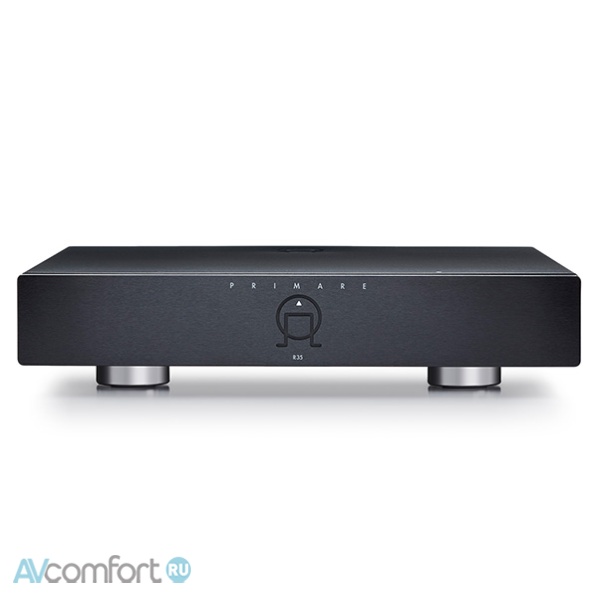 Позолоченные выходные и входные RCA разъемы в тефлоновой изоляции позволяют обеспечить высокое качество для сигналов низкого уровня. Primare R35 оборудован управляемой схемой заглушения сигнала для мягкого включения и выключения устройства.