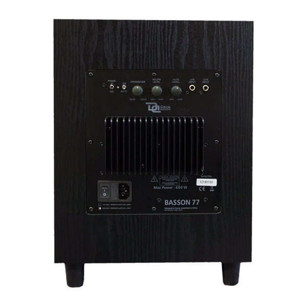 Он мощный (600 Вт в классе D), оснащен универсальными настройками (частота среза, громкость, фаза) и при этом остается практически незаметным. Два круглых фазоинвертора, направленных вперед, чтобы низкие частоты хорошо распределялись в комнате и чтобы их расположение мало влияло на комнатные резонансы.