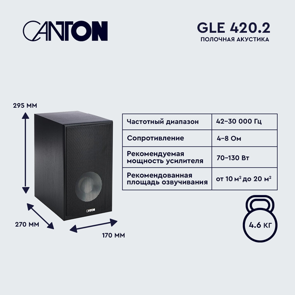 Информация взята с сайта avcomfort.ru Canton GLE 420.2 - уникальная акустическая система представляет собой 2-полосный монитор с фазоинверторным оформлением, в прямоугольном корпусе из березовой фанеры с довольно тонкими, но критически задемпфированными стенками. Для демпфирования применены плиты из материала wool, закрепленные на внутренних плоскостях корпуса. При номинальном импедансе в 8 Ом GLE 420.2 обладает чуствительностью SPL 86.5дБ (2.83В, 1м)...