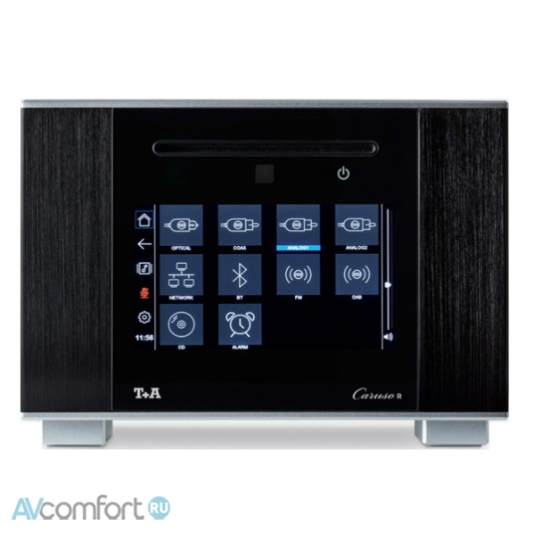Информация взята с сайта avcomfort.ru Caruso R логично продолжает тему Caruso, и это является ключом к его приятному, узнаваемому внешнему виду. Алюминиевая рама T+A обеспечивает высокую точность и прочность, а его внешние размеры напоминают о первом Caruso 2008 года. Новый 7-дюймовый HD-экран эффектно расширяет Caruso R, придавая ему сдержанную элегантность даже без динамиков.