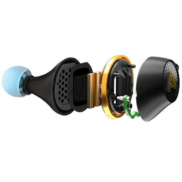 Литой фрезерованный алюминиевый корпус. Легкий и прочный корпус Euclid с плавными очертаниями и элегантной матовой черной отделкой изготовлен из цельного куска алюминия и снабжен вставкой из углеродного волокна. Чтобы обеспечить максимально комфортную и надежную посадку в комплекте с Euclid поставляются силиконовые и вспененные насадки 3 разных видов, включая SpinFit и Comply.