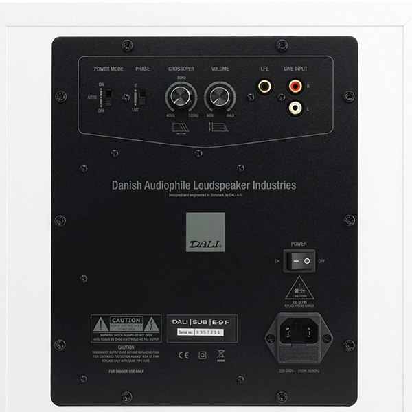 Для улучшения звуковоспроизведения в целом и возможности работы сабвуфера в самых сложных условиях в секции усилителя имеется встроенный лимитер. Встроенный амплитудный ограничитель сравнивает амплитуду входного сигнала с ожидаемым уровнем на выходе. Если эта схема обнаружит потенциальную проблему, лимитер аккуратно ограничит сигнал и это не скажется на пиковой мощности. Dali SUB E-9 F оснащён регуляторами входной чувствительности, частоты среза и фазы, что позволяет адаптировать его к любым фронтальным громкоговорителям и к акустике помещения. А с помощью низкочастотного или линейного входов его можно подключить практически к любому усилителю, ресиверу или процессору.