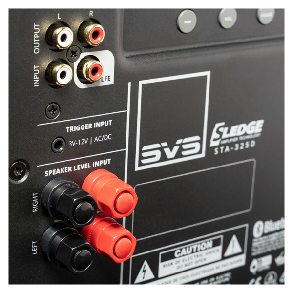 Встроенный усилитель Sledge STA-325D работает в классе D и выдает 325 Вт в рабочем режиме и более 800 Вт в пике. У него есть встроенный цифровой процессор, который согласовывает работу динамика с корпусом и помогает получить линейную характеристику на выходе. Регуляторы громкости, частоты и фазы выглядят и функционируют в цифровом измерении. Входов у SVS 1000 Pro полный набор: стереофонический низкоуровневый, а также LFE, совмещенный с низкоуровневым. Также имеется стереофонический низкоуровневый выход с фиксированной частотой среза 80 Гц. Последний позволит «разгрузить» усилитель мощности и без процессора в системе.
