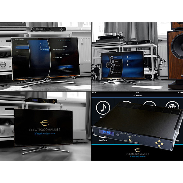 Для интеграции в локальную сеть служит порт LAN или встроенный модуль Wi-Fi. При этом становится возможным воспроизведение медиафайлов с компьютера или NAS-сервера. Поддерживаются протоколы DLNA и UPnP. Модель работает с потоком из сети Интернет, включая: Веб-радиостанции, AirPlay 2, Spotify Connect, TIDAL, Qobuz. Для управления Electrocompaniet ECM 1 MKII можно использовать пульт ДУ или приложение, установленное на мобильные устройства на базе Android или iOS. Доступно управление через веб-браузер.
