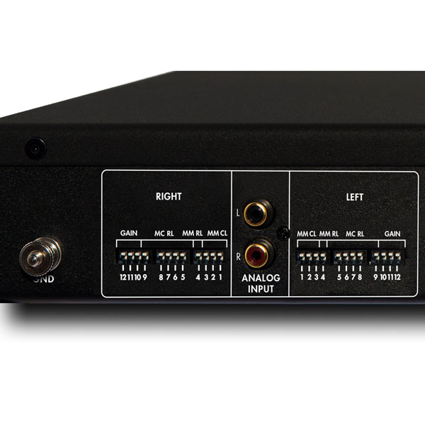 Схемотехника ECP 2 MKII предусматривает любые мыслимые комбинации параметров картриджей и соединительных кабелей благодаря широкому диапазону настроек входного каскада. В ECP 2 MKII можно выбрать наиболее подходящее сочетание емкостной (0–350 пФ) и резистивной (10 Ом — 47 кОм) нагрузки.