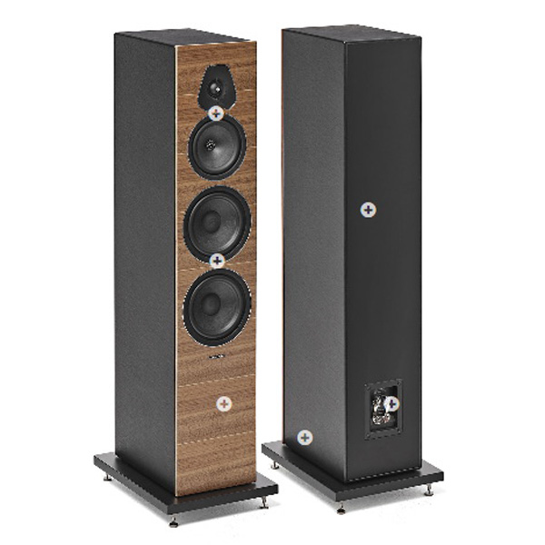Многослойное дерево и натуральный шпон передней панели колонки Lumina доступны в отделки знаковых колонках премиум класса, и включают орех и венге, оба в матовом исполнении со вставками из клена, а также третий вариант с отделкой в черном рояльном лаке. Все остальные поверхности колонки вручную обтянуты нашей легендарной черной кожей. Хромированные кольца вокруг динамиков подчеркивают формы и пропорции и придают яркость передней панеле, подчеркивая характер звучания Sonus faber.