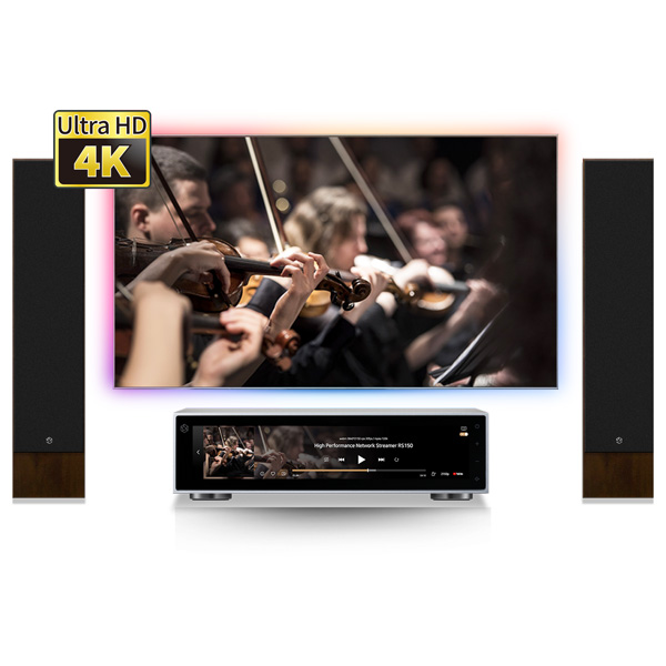 Поддержка видео UHD 4K. HiFi Rose RS150 позволяет вам наслаждаться видео в формате Ultra HD 4K, хранящимся локально или через приложение Rose Tube, благодаря выходу HDMI. Идеально подходит для домашнего кинотеатра!