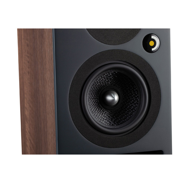 Для средних и низких частот здесь используется фирменный динамик диаметром 130 мм. Диффузор этого драйвера изготовлен из кевлара — материала, который характеризуется высокой жесткостью и небольшим весом. Кевлар сплетён по фирменной технологии и закреплен на корзине с помощью эластичного резинового подвеса.