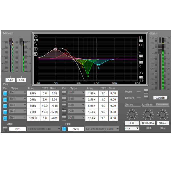 Соответственно, в составе Titan 15 работает два усилителя класса D, которые и обеспечивают эти максимальные 2 х 3 200 Вт. Они управляются электронным кроссовером и получают сигнал от фирменного DSP, который позволяет точно откалибровать и согласовать сабвуфер с параметрами комнаты прослушивания.